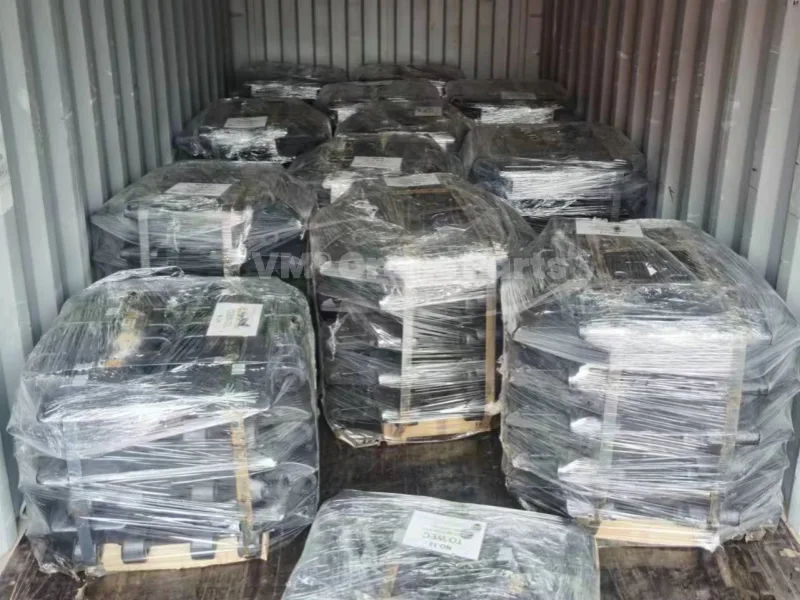 For the track shoe and track link: as usual, we packed 1 set track link per pallet, and 6pcs-20pcs track shoes per pallet. Besides, for small Hitachi Sumitomo crane undercarriage parts, we can assemble track link assy with track shoes together, or assemble track shoe, pin, and bolt nuts, the photo of the package is as follows.
